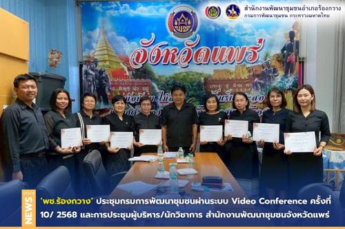 พช.ร้องกวาง ร่วมประชุมกรมการพัฒนาชุมชนผ่านระบบ Video Conference ครั้งที่ 10/ 2568 และการประชุมผู้บริหาร/นักวิชาการ สำนักงานพัฒนาชุมชนจังหวัดแพร่